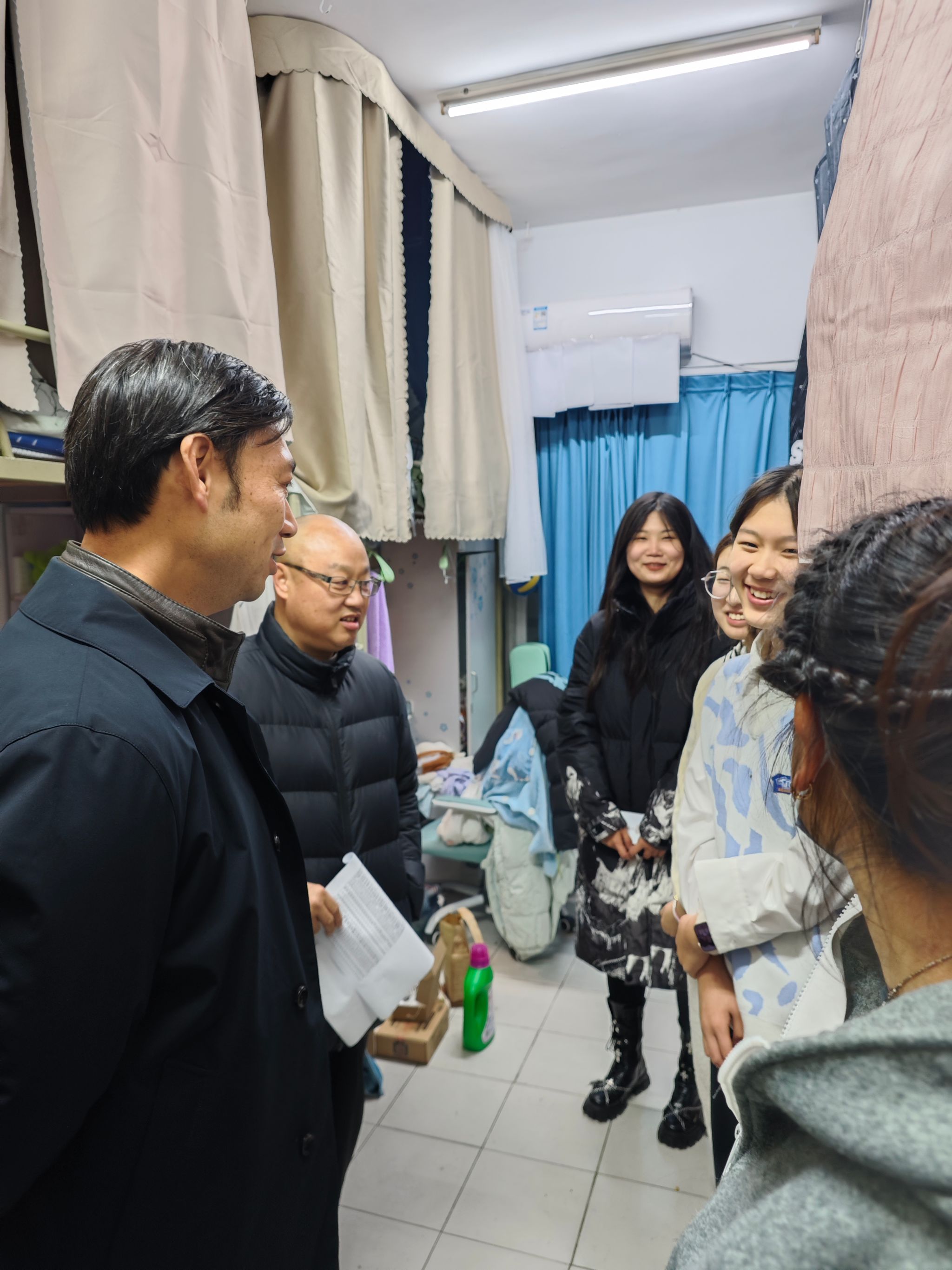 在走访过程中,应中书记和姜锐院长详细了解了同学们的作息时间、饮食健康、学习环境等情况鼓励大家要勤奋学习,努力提高自身综合素质。同时,他们还关注学生的生活状况和心理状态,提醒大家要注意身体健康,保持良好的心态。并针对同学们反映的问题和困难,提出了相应的解决方案。他们叮嘱同学们要严格遵守学院的各项管理规定,做好科学防护,共同守护校园安全。同时,他们关心同学们期末考试和放假安排,希望大家在考试中取得优异成绩,度过一个愉快、安全的假期。