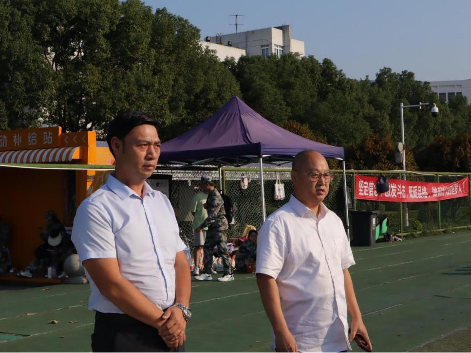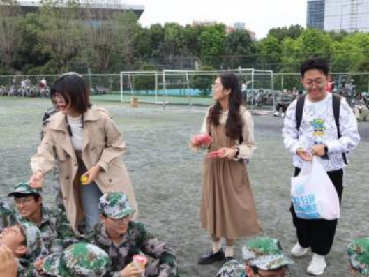 的应中书记和姜锐院长也来到训练场慰问同学们,鼓励同学们一定要好好参训,争取突破自我。我们展示近期学习的捕俘拳,得到了在场人员的一致好评。姜院长分享起自己二十多年前的军训经历,再次强调了运动的重要性。应书记更是每天到训练场记录下同学们在军训中成长的点滴。班助们也贴心地为同学们送来饮品和水果,驱散军训的疲倦与炎热的天气。