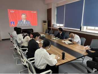 全体教职工在学院党员活动室集中收看党的二十大开幕式盛况直播。