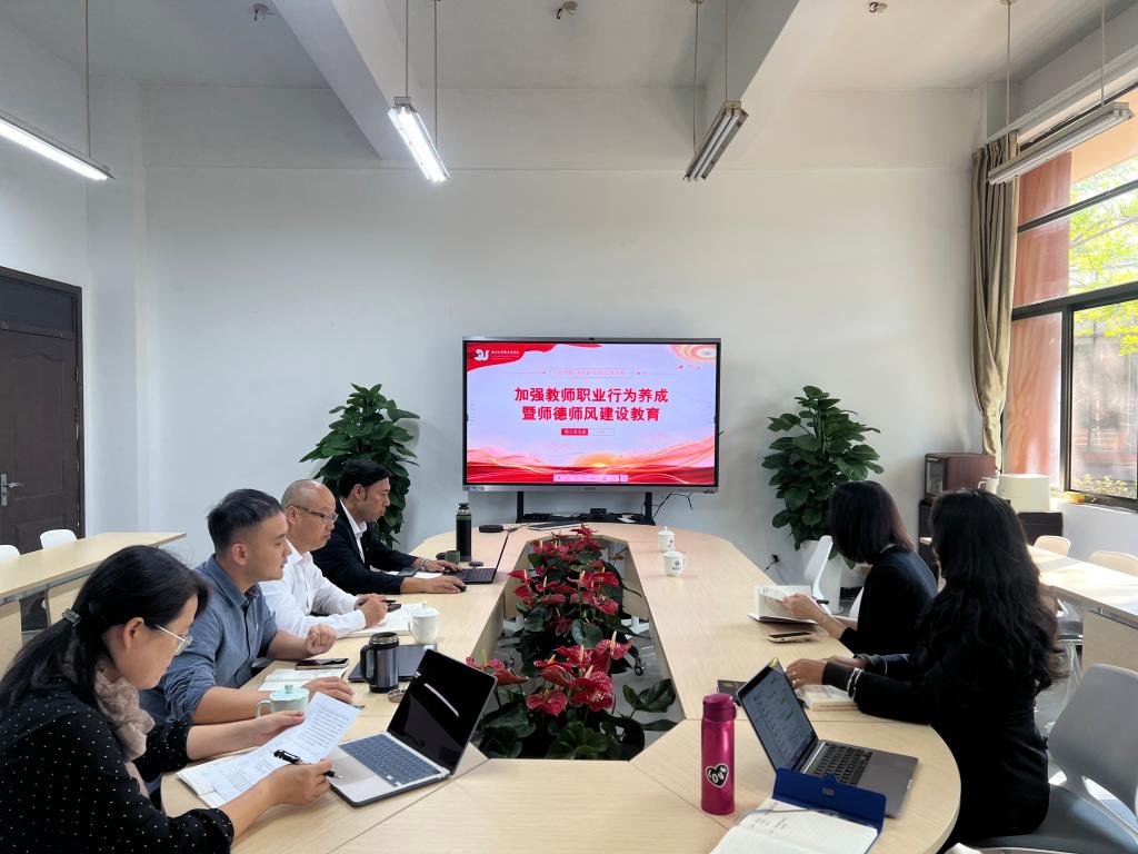 王彬首先带领全体教师学习了新时代教师职业行为十项准则,即坚定政治方向、自觉爱国守法、传播优秀文化、潜心教书育人、关心爱护学生、坚持言行雅正、遵守学术规范、秉持公平诚信、坚持廉洁自律、积极奉献社会,强调全体教师应严格遵守十项准则,明确师德底线,规范职业行为。