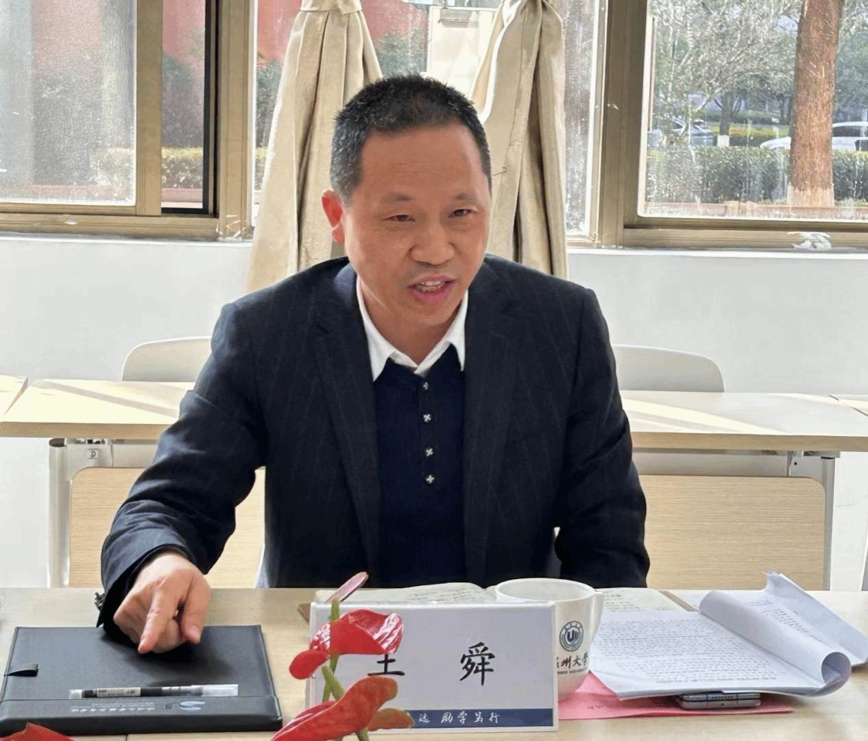 王舜作总结讲话,他提出三点期望,一是牢牢树立培养目标,对培养什么样的学生进行清晰定位;二是加强学院顶层谋划,可以邀请相关领域的专家、师生一同谋划,做好顶层设计;三是打造学院特色品牌,唱响苏院好声音。