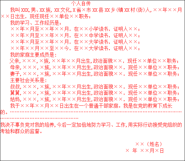 (4)要总结经验教训。写自传不单单是记录自己的生活经历,而应通过对自己生活经历和思想演变过程的回顾,理清思想,明辨是非,总结经验教训,明确努力方向。