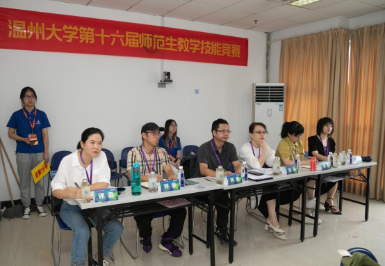 部分专业教学法老师共作为比赛评委。评委在综合考量选手的语言表达、教学设计、多媒体课件制作、教学方法、教学创新、教学效果和逻辑思维等基础上进行打分。