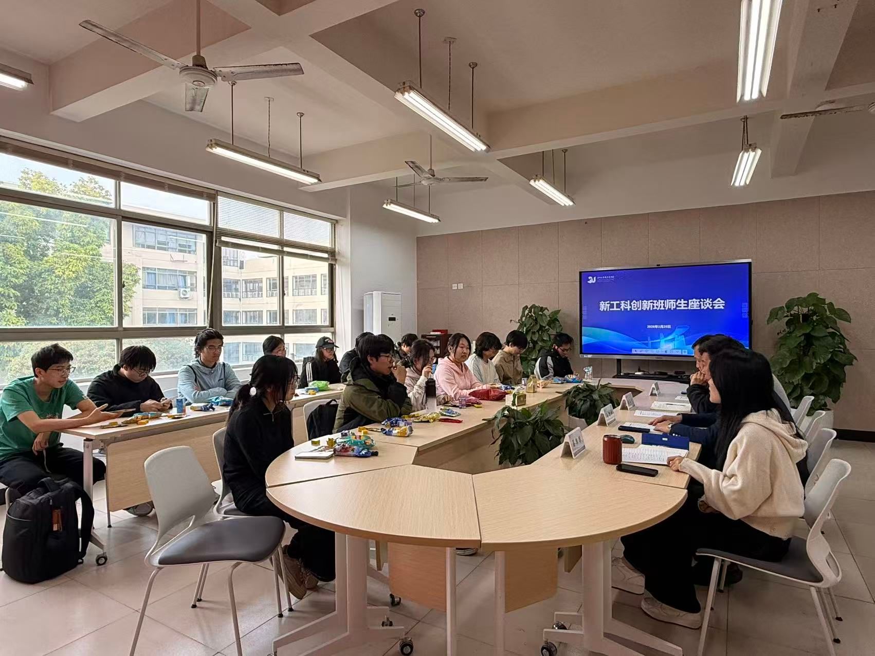 于9-A204会议室召开新工科创新班师生座谈会。学院执行院长马增岭、党总支书记潘从义,专业负责人成泰洪、教学科老师及新工科创新班全体学生参会。