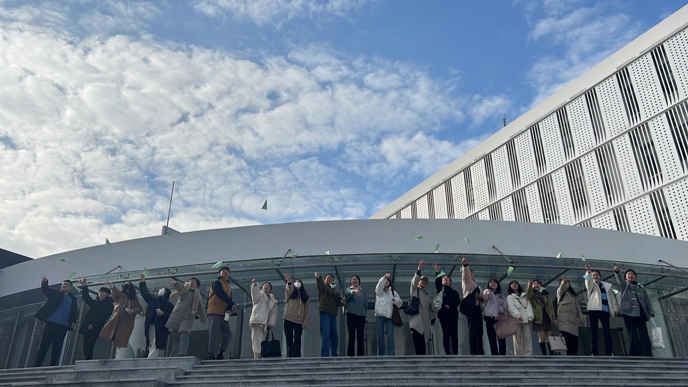 会后,胡珏老师引导学员们将手中写满答案的绿色卡纸折成纸飞机,将承载着每位学员理想和希望的纸飞机在行政楼一楼美术馆前放飞,祝福每一位备赛选手在周末的省赛中取得优异成绩!
