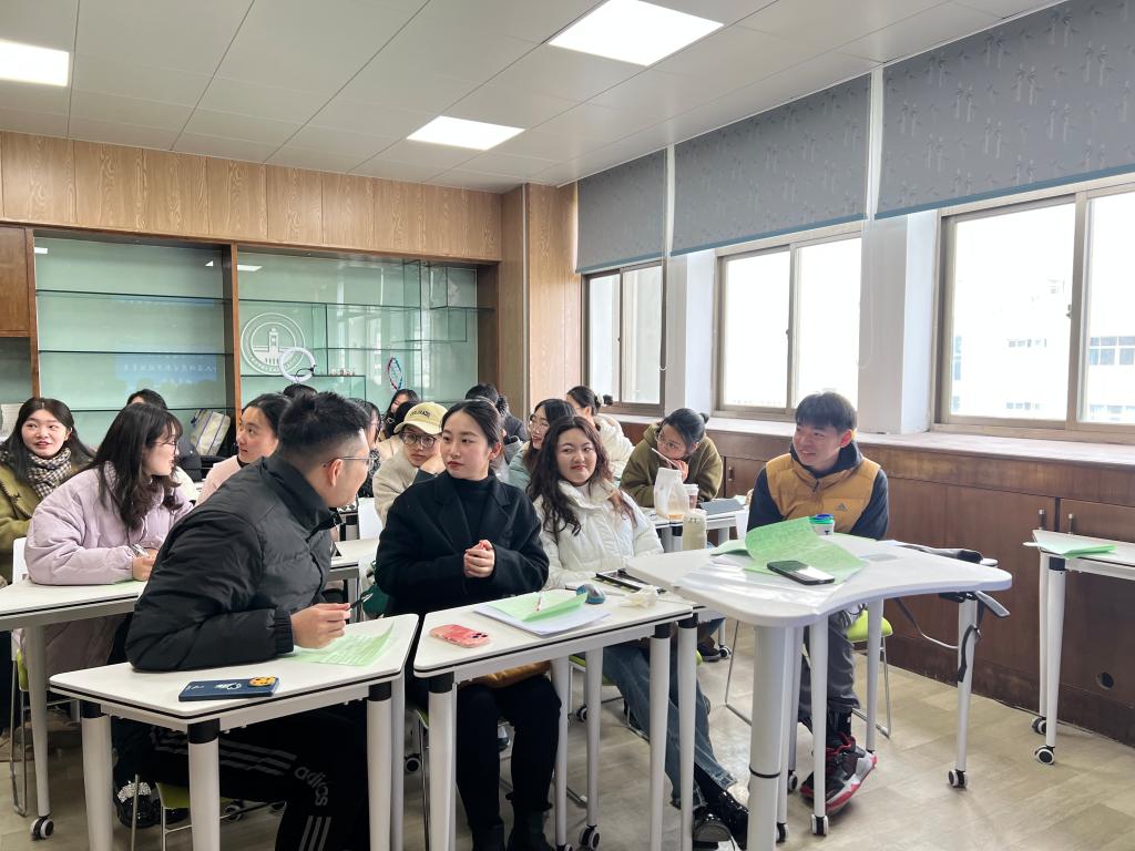 第一问,学员们通过逐一分享的形式表达出自己对于省赛乐观放松的心态、具备一线教学的经验、勤于反思且脚踏实地的态度等优势,有效提升了学员们的自我认识与自信心。第二问,需要学员直面内心,与老师、同伴敞开心扉,通过互问互答、互帮互助的形式化解忧虑,助力成长。针对第三问,胡珏老师表示,一个老师优秀与否,取决于功底是否深厚扎实,成为一名优秀的教师是一个长期的过程,学员们应当重视每一次实战机会,在不断实践的过程中提升师范技能,为成为一名优秀的教师积累经验。