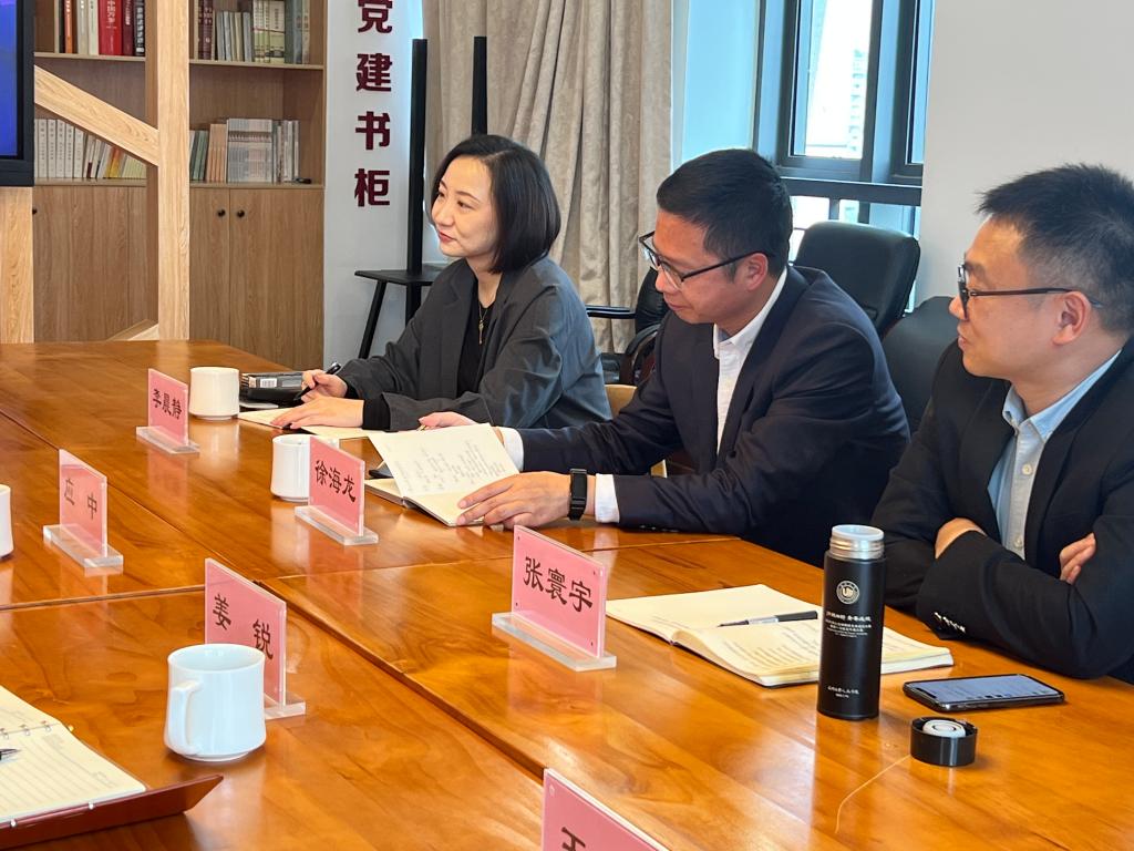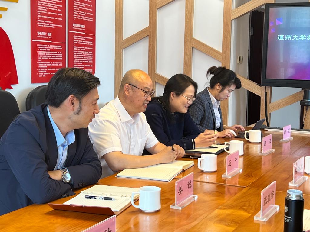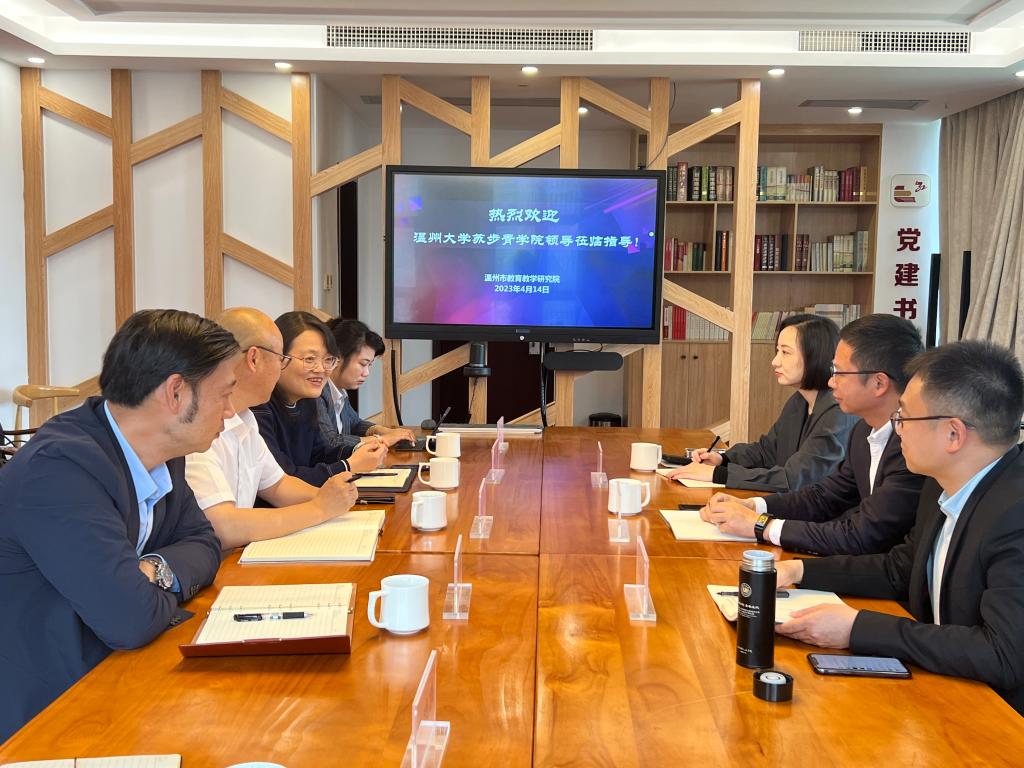 党总支书记应中、执行院长姜锐等一行5人赴温州市教育教学研究院(以下简称市教研院)调研交流。市教研院书记、院长徐海龙,副院长张寰宇、办公室副主任李晨静等人参加座谈。座谈会由张寰宇主持。