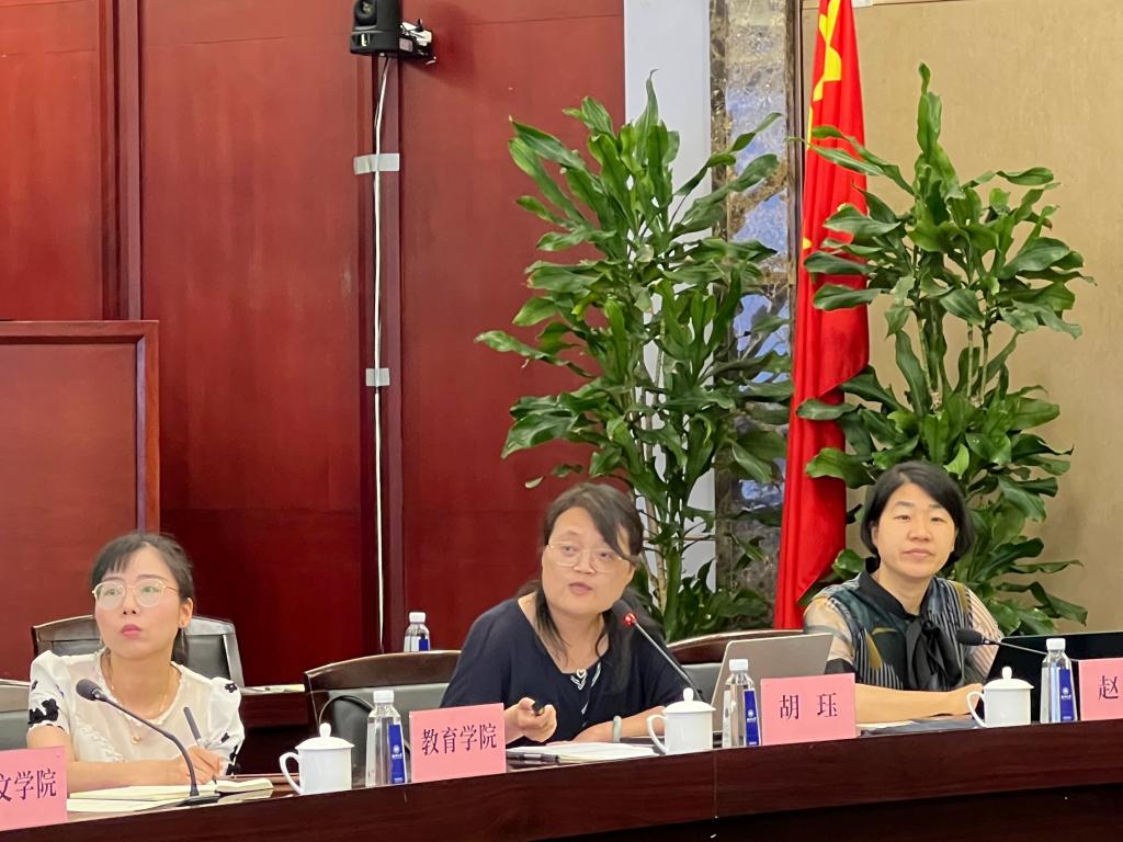 会议伊始,胡珏作师范生技能竞赛总结分析。她从赛事简介、赛事组织、赛事成绩三方面对师范生教学技能竞赛展开总结分析,阐明A片漫画