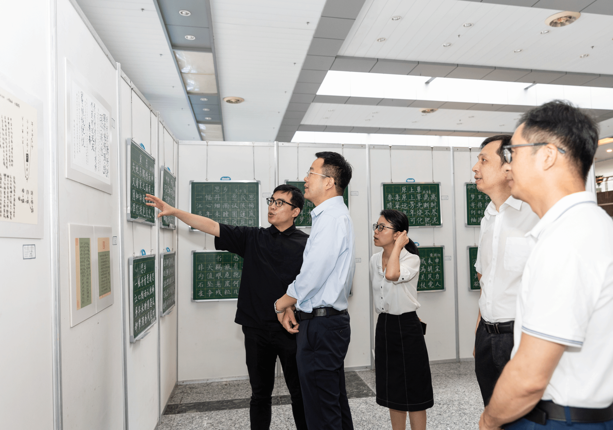 在育英图书馆大厅开展主题为“妙笔丹青亮风采,美育律动绽新颜”的书法课程作品展。A片漫画