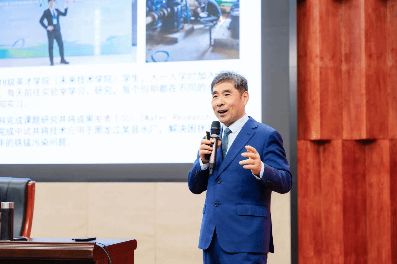 邀请,中国工程院院士、哈尔滨工业大学教授马军做客“步青讲坛”,作题为《面向新质生产力发展的拔尖创新人才培养思考》学术讲座。学校荣誉学院全体学生和生环学院学生代表现场聆听报告。此次讲座不仅拓宽了学术视野和思维方式,也进一步激发了同学们在相关领域的研究热情和研究视野。