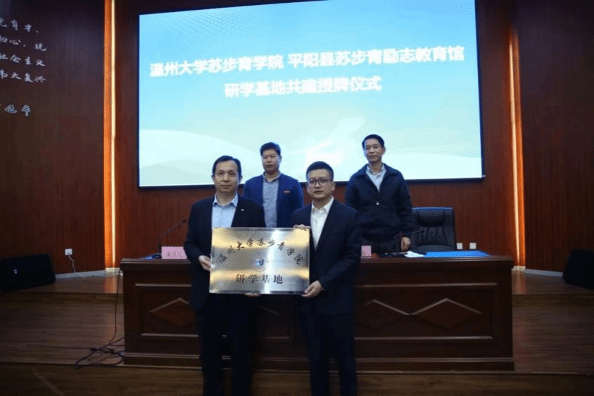 与苏步青励志教育馆正式签署了共建研学基地的协议,并举行了授牌仪式。这一举措标志着双方将共同致力于推动思政教育与实践教学的深度融合,为培养更多具有科学家精神和创新能力的优秀人才贡献力量。
