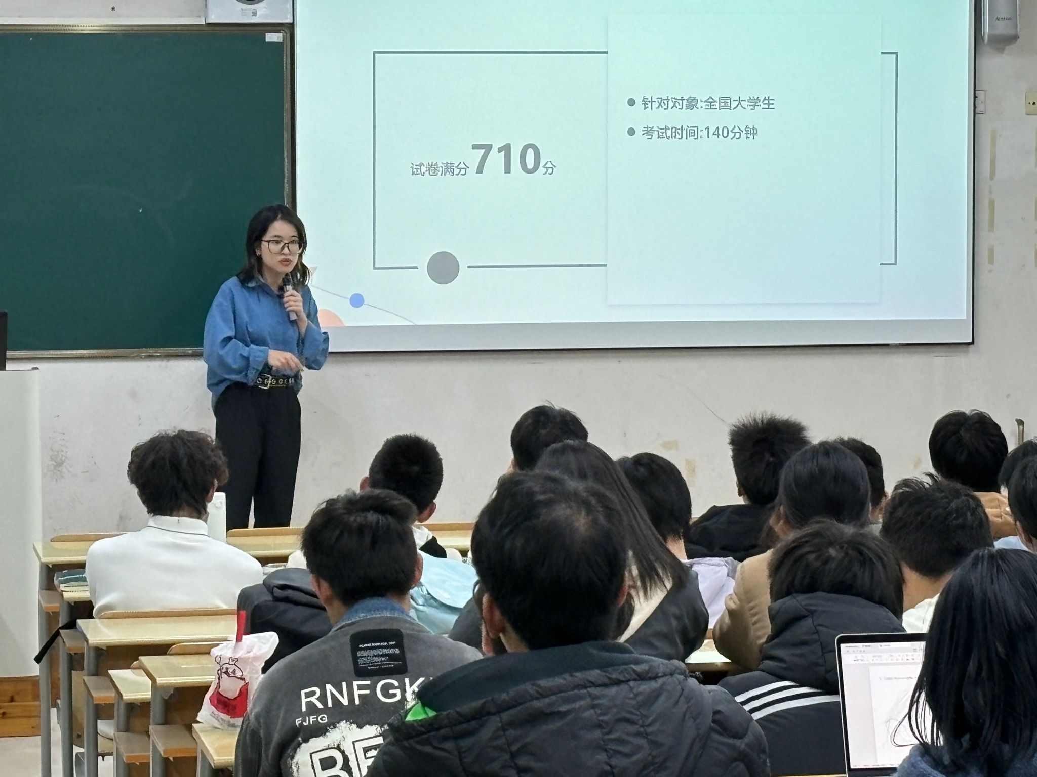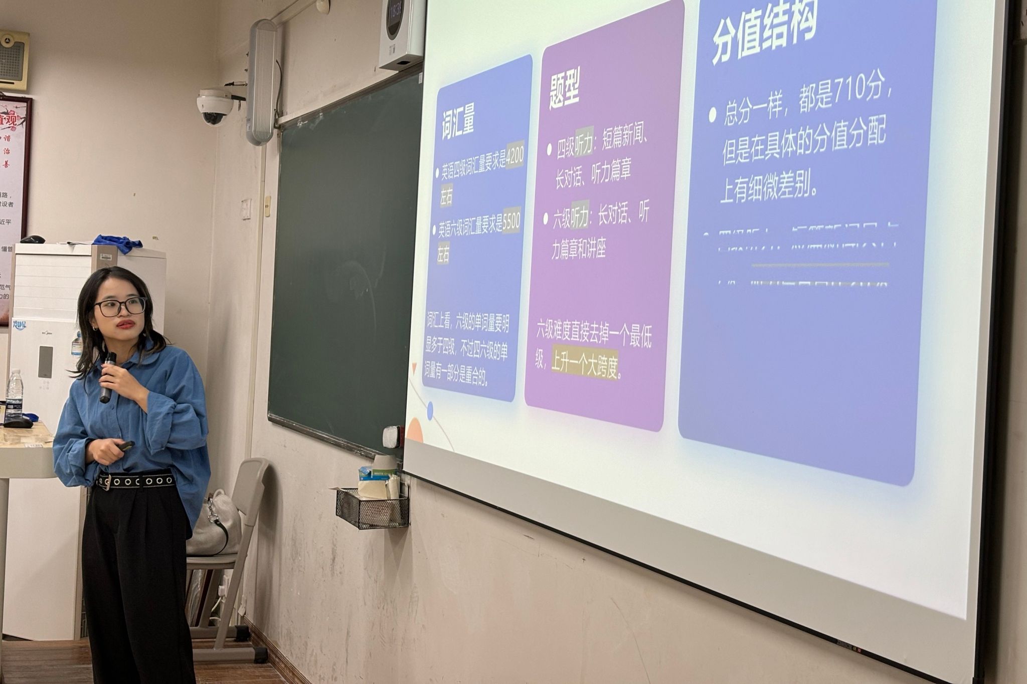 于12月5日晚18:30在南9B-305举办了四六级英语答题技巧分享会。本次分享会由邹彤彤老师主讲,为同学们答疑解惑,助力同学们科学备考。