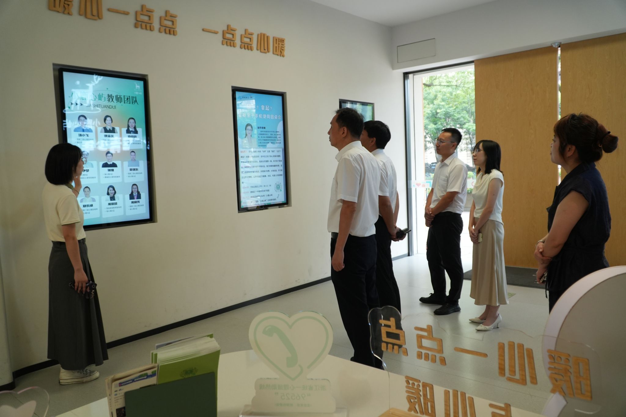 庄兴忠书记一行在小鹿心屿负责人唐璐璐带领下参观了“小鹿心屿”,深入了解中心开展青少年心理健康教育情况。