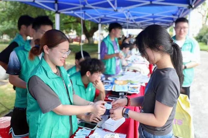 于报到日精心策划并开展了以“求知启航·智趣迎新”为主题的新生迎接活动,以学科为纽带,以趣味为桥梁,营造出热情温馨的迎新现场。