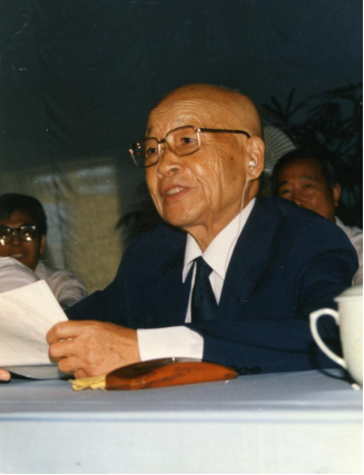 图3 1987年9月15日,名誉校长苏步青教授在新生开学典礼上讲话